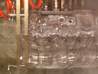 A culassa é submetida a pressão interna enquanto permanece mergulhada em agua aquecida, simulanda as condições reais de funcionamento do motor.